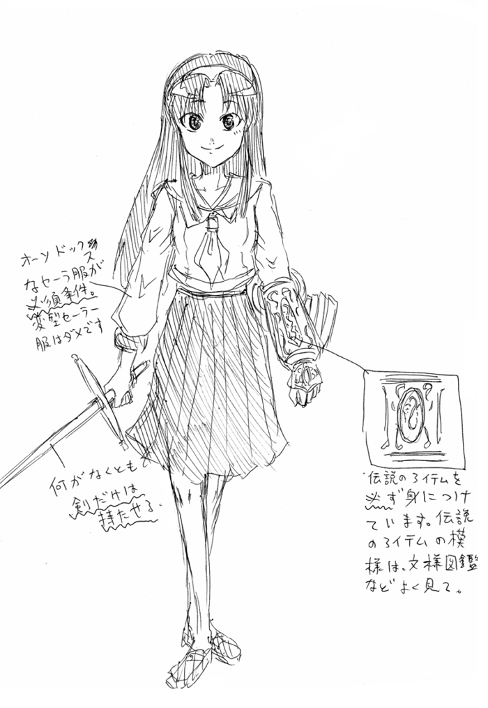 これで、元祖美少女ゲーム風の基本はわかりましたか? 必須なのはセーラーと剣と伝説のアイテムです。 まあ、基本ですね。