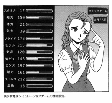 拍手返信 >ちょ、なんか後ろの方すごいざわざわしてるじゃないですかwww いや、だってさもうすぐクリスマスですよ? そりゃ、ざわざわしますって。 >一瞬処理が遅れて壁紙だけが一面に表示されたからかなりビビッたわw ざ・わーるど >プリメ既に武勇あるじゃん(=ω=) マジで。よしwikiろう。 うっわ~ありますね、PS版に。 やばい恥ずかしい、穴掘って埋まっておきます。 これはやるしかないねプリメの3作目、めっさ武勇あげます。 三国一の娘に育て上げますよ~。 >背景も拍手絵も自重してくださいwww ざわわ~ざわわ~ざわわ~ キャラデザの壺はすばらしいです。 そうですね、まずこの画像をみてください これはキャラデザの壺が一例にあげた育成ゲーム、つまり○リンセスメーカーなのですが。 ステータスを見ていってください スタミナ、知力・・・・モラル・・・魅力、ストレス